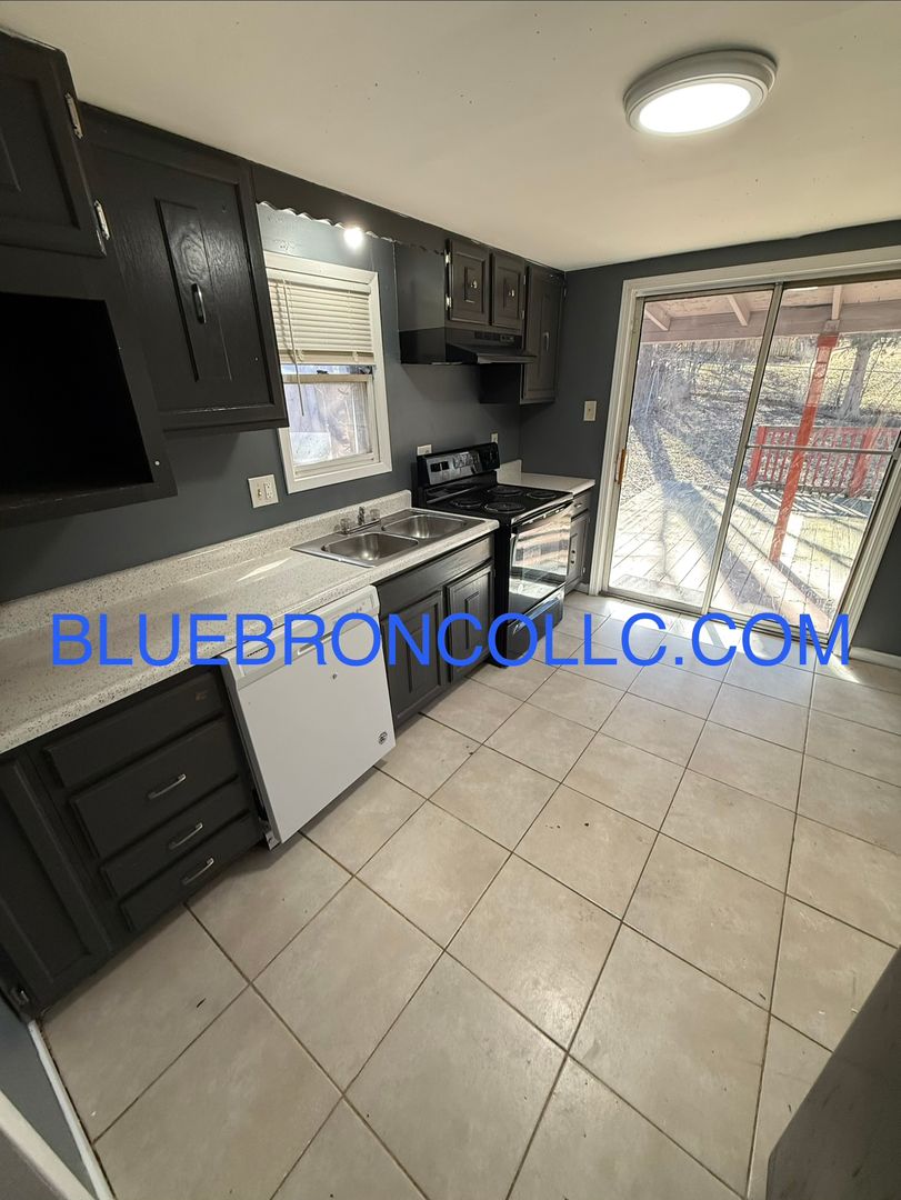3 bedroom 2 bathroom with no garage. Roomy interior with fresh paint, , unfinished basement for storage. Includes washer and dryer hook ups, stove included, fridge and dishwasher there as a courtesy.
